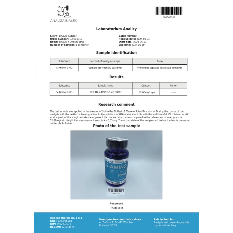 This is my second time ordering 5-Amino-1MQ (50mg, 30 caps) from BiolabShop, and the quality remains exceptional. The capsules are uniform, well-encapsulated, and packaged in a moisture-proof, clearly labeled bottle with batch and purity details—perfect for lab inventory and documentation.