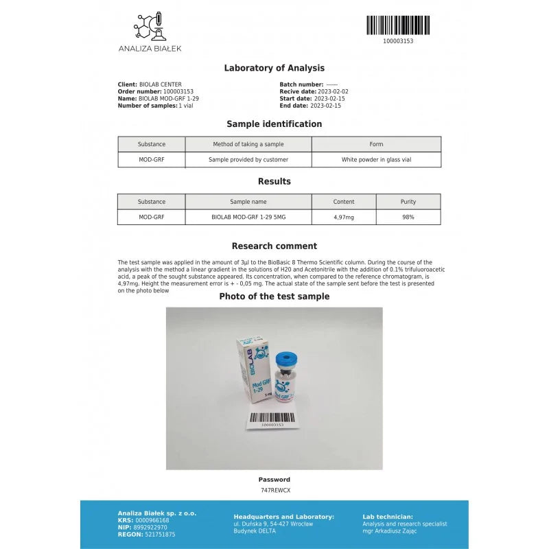 MOD-GRF (1-29), commonly known as Modified Growth Releasing Factor, is a synthetic analog of Growth Hormone Releasing Hormone (GHRH) that has been structurally enhanced for greater stability and efficacy. It consists of the first 29 amino acids of naturally occurring GHRH—the region responsible for full biological activity—modified to resist enzymatic degradation in vivo.