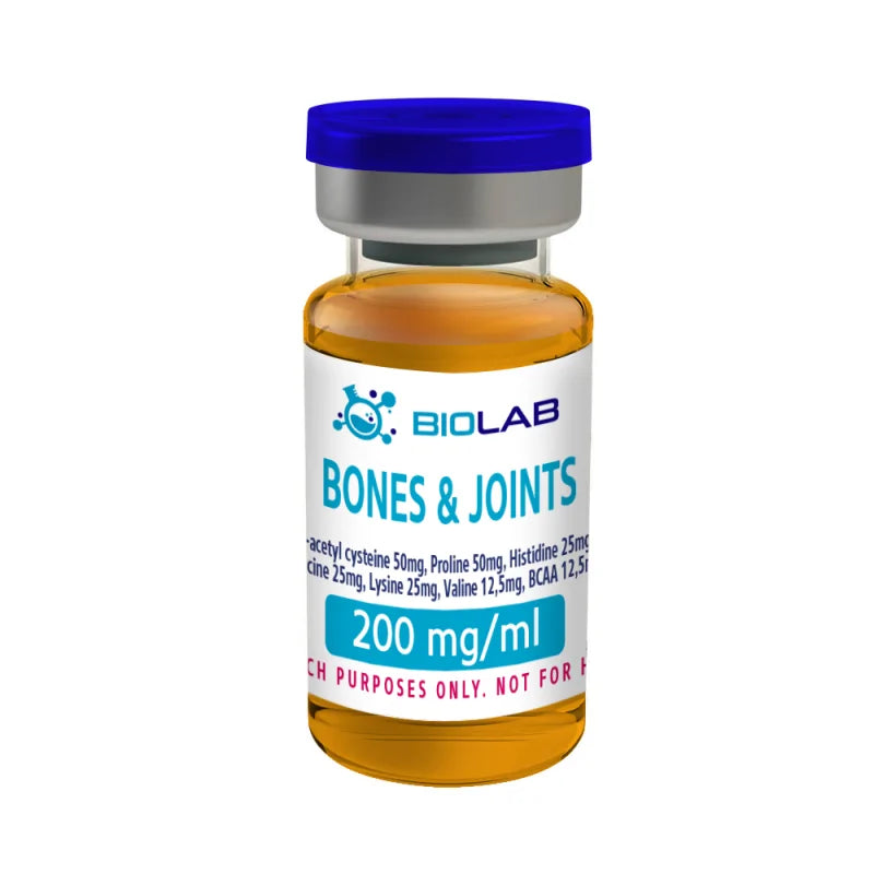Bones & Joints 200 mg demonstrates consistent results in lab-based models focused on connective tissue integrity and skeletal resilience. Its composition suggests value in studying recovery from strain, inflammation regulation, and long-term structural support. A well-balanced option for non-human applications requiring precision and stability.