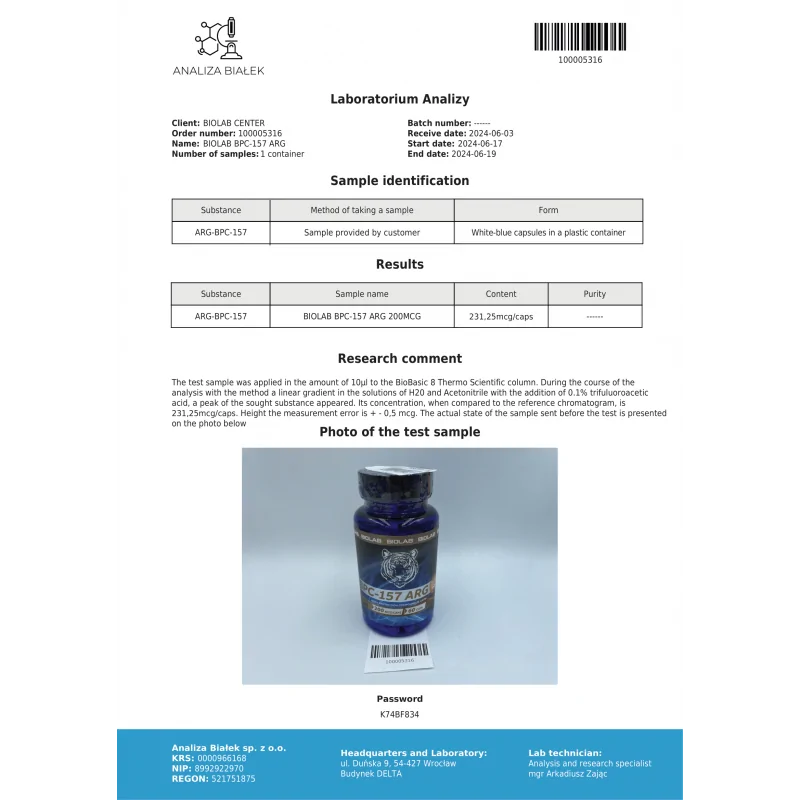BPC-157 + Arginine Capsules combine the regenerative power of BPC-157, a penta-decapeptide derived from a naturally occurring body protective compound, with L-Arginine, a conditionally essential amino acid known for its role in nitric oxide production and tissue repair. This synergistic formulation is designed to support research in areas related to wound healing, gastrointestinal health, inflammation, and tissue regeneration.