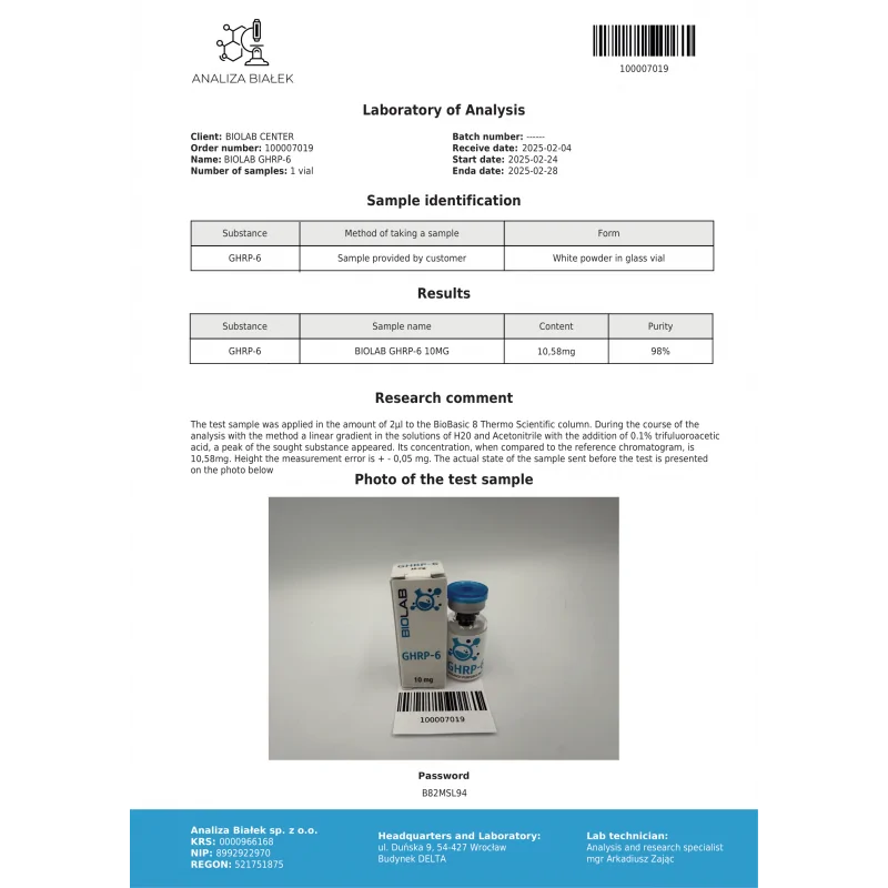 Tissue Repair & Scar Formation: Research suggests GHRP-6 may play a role in wound healing and cardiac tissue repair, with beneficial effects on scar tissue modulation and cardiomyocyte regeneration.