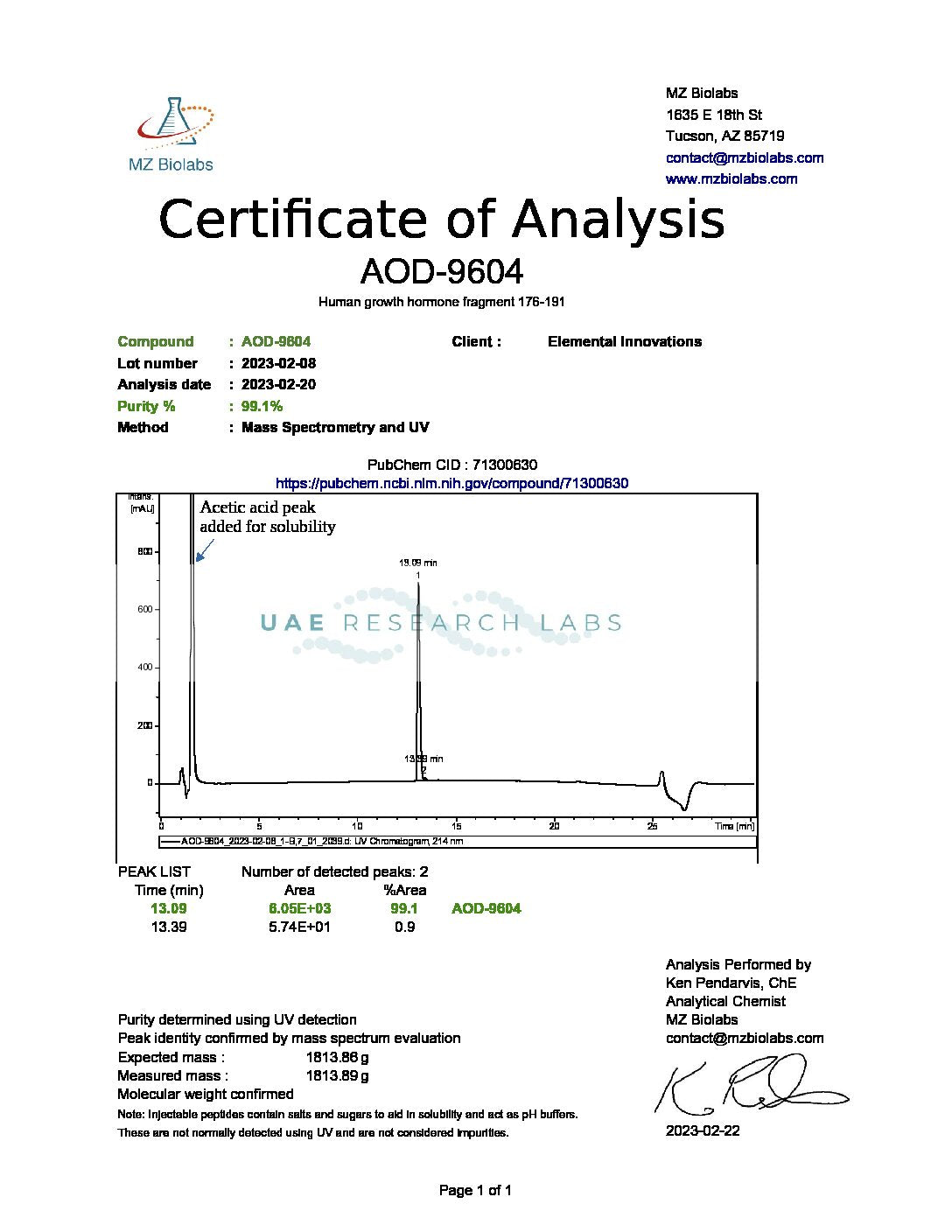 AOD-9604 is a synthetic analog of the C-terminal fragment of human growth hormone (amino acids 176-191). This region of the GH molecule has been identified as responsible for regulating fat metabolism, without triggering the growth-promoting effects normally associated with GH.